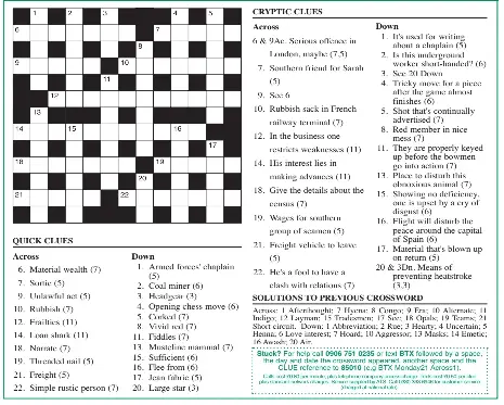 Cryptic Crossword The Scotsman 13 01 14 The Scotsman