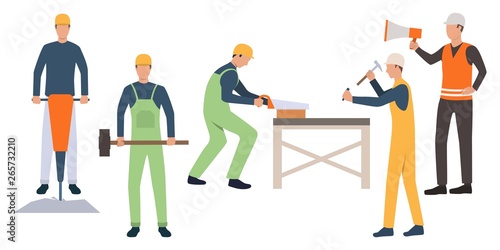 Set Of Construction Workers Building House Bundle Of Engineers